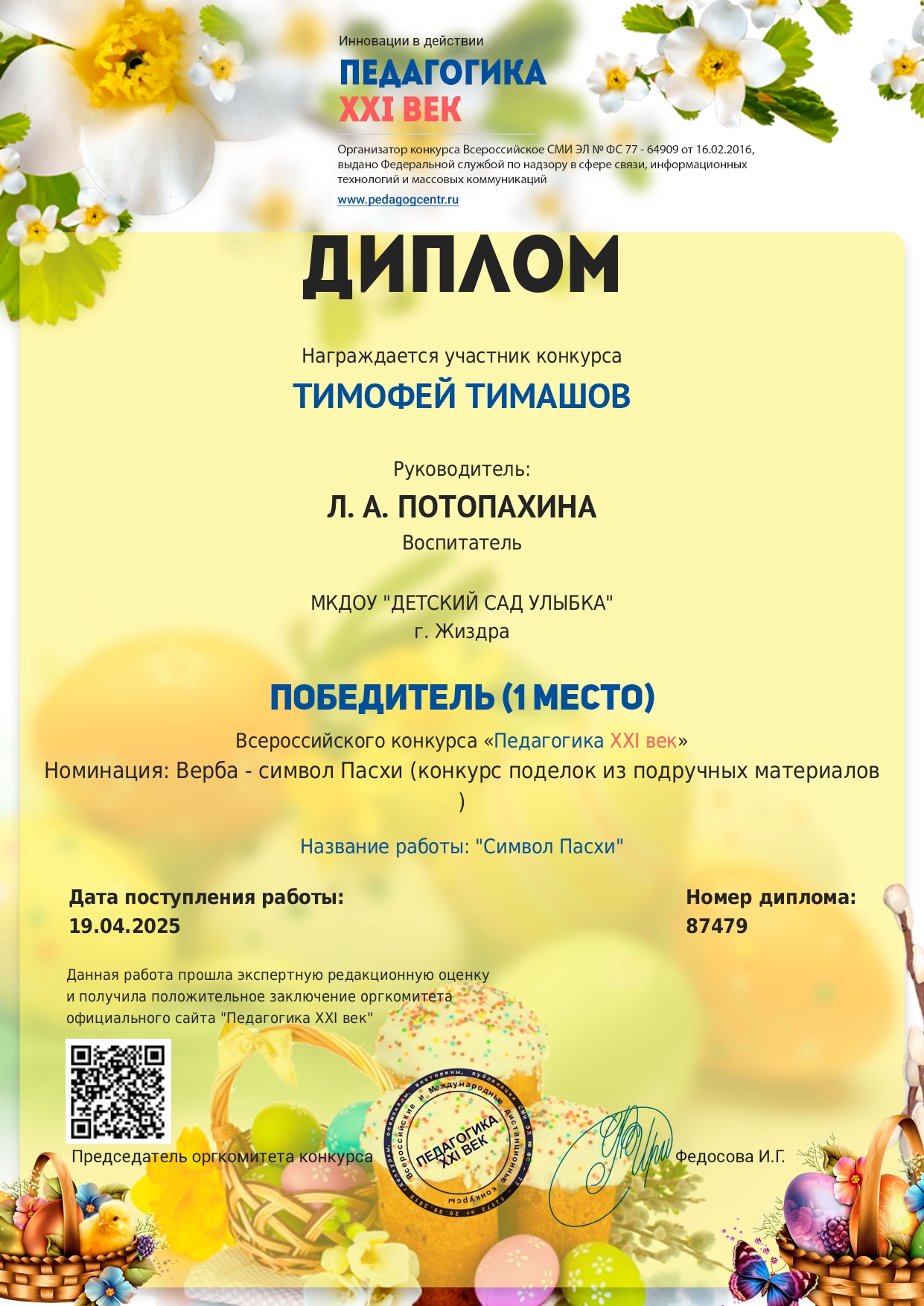 Конкурс "Педагогика ХХI века". Номинация "Распустила Осень косы" (поделки из природного материала"